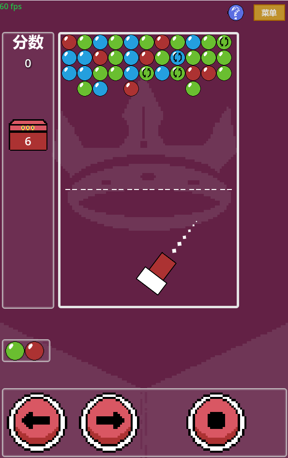 简单的泡泡龙三消游戏。